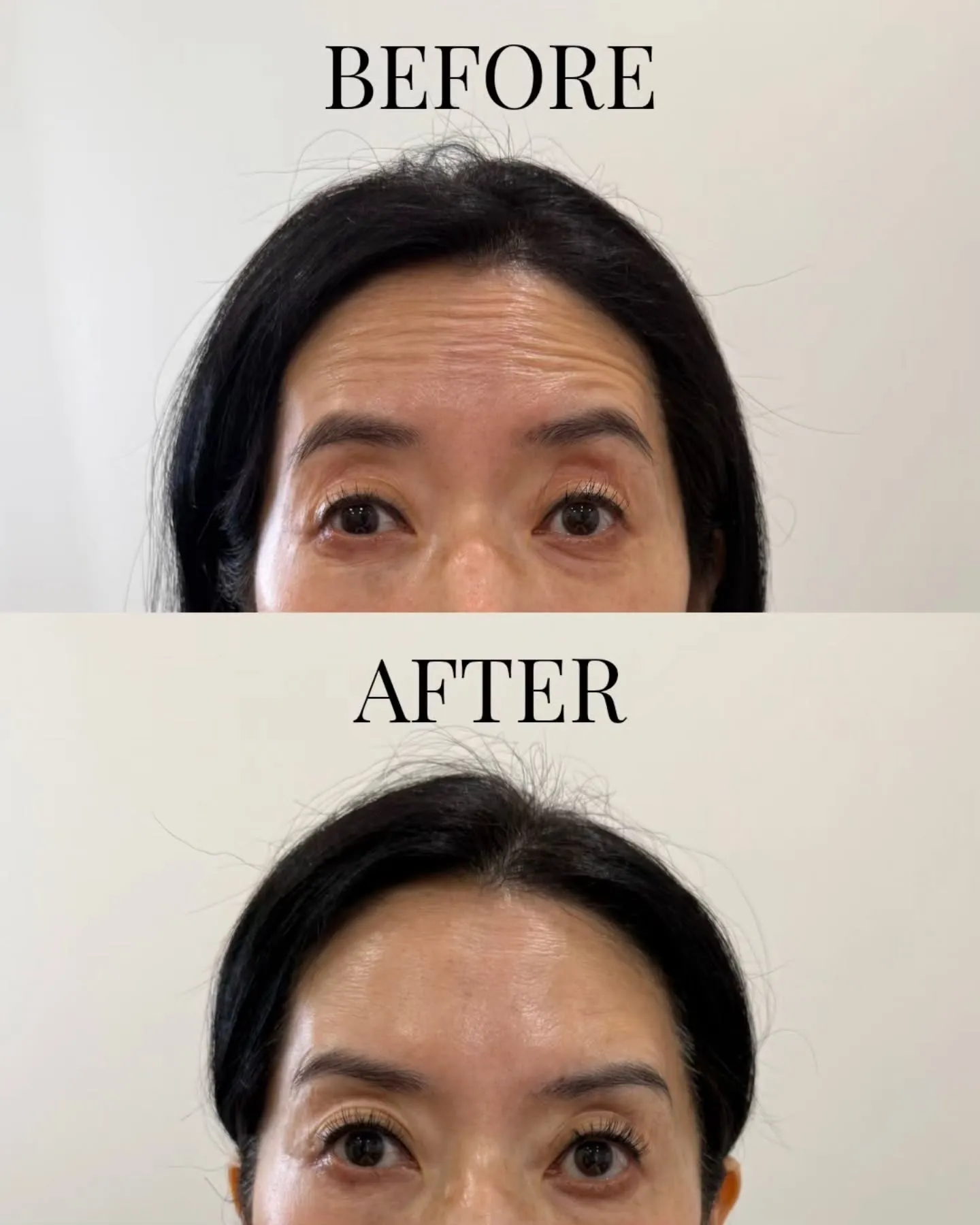 Forehead lines, frown lines, crow’s feet, brow lift micro-tweaks.