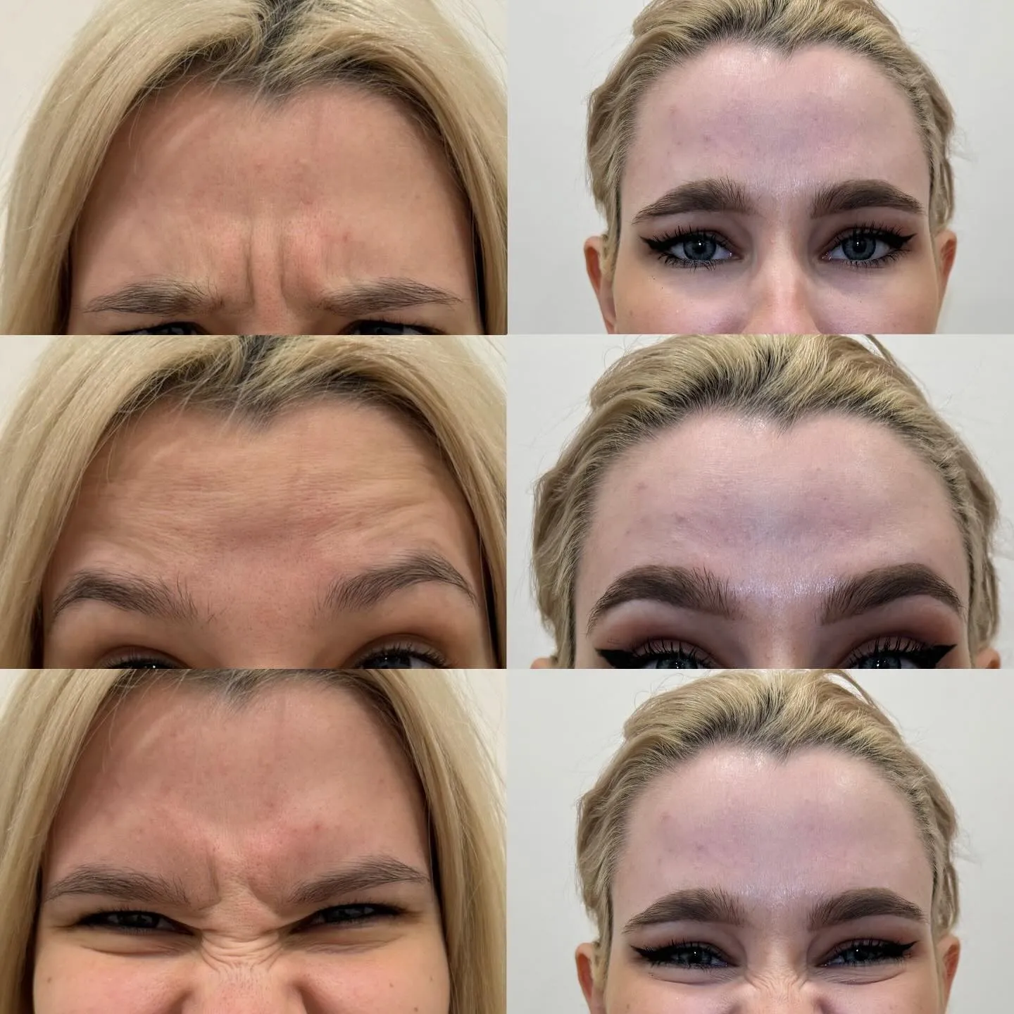 Forehead lines, frown lines, crow’s feet, brow lift micro-tweaks.